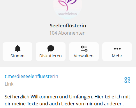 Auf meinem Telegram-Kanal teile ich Texte und Lieder, bei denen ich fühle, dass sie gerade zur Zeitqualität passen. Außerdem erfährst du dort auch immer meine aktuellen Termine.